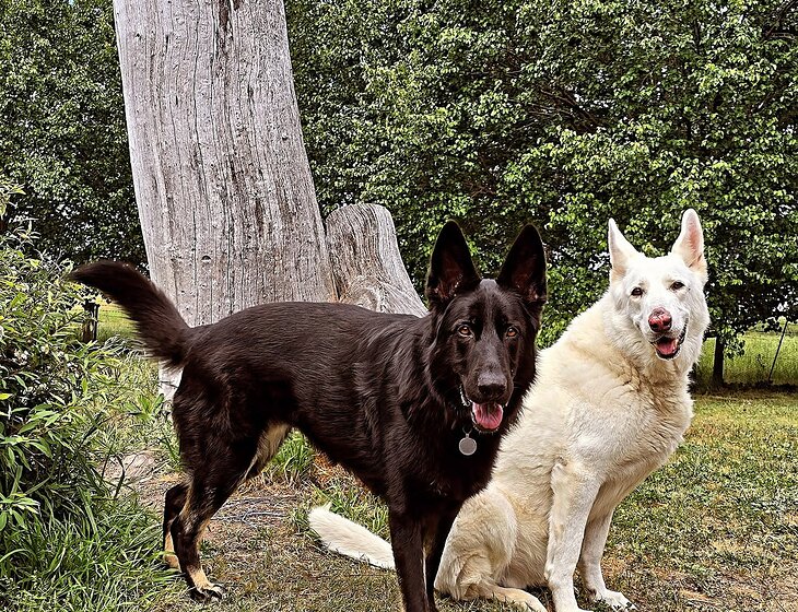 We have 2 gorgeous German Shepherd dogs, Freya and Rocky. Rocky is 9 years old and Freya is a rescue and approx. 2.5 years old. They love to be around people, cuddles and snacks. Minimal care, just daily feeding, some company and a play.
