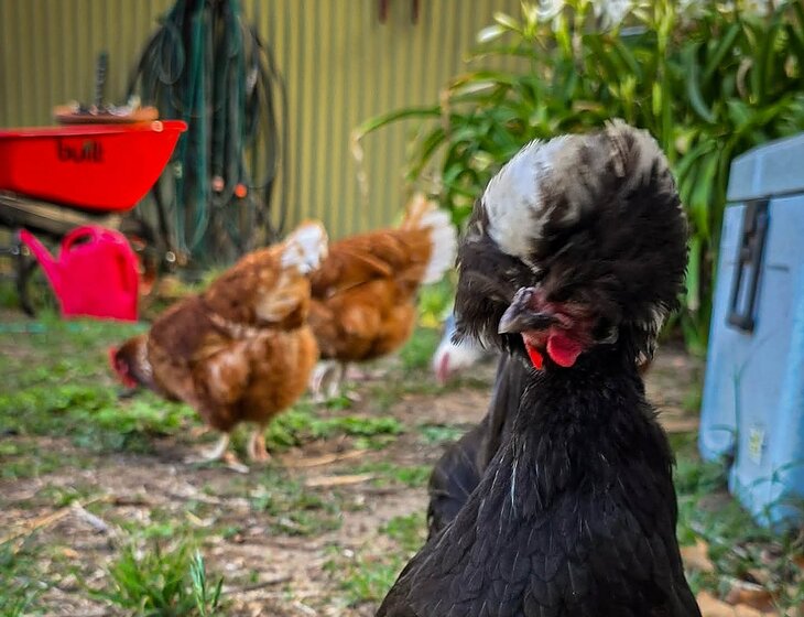 We also have 6 chickens, they have a coop and a run, but also love to be let out for a couple of hours to free range. Will need checking and adding food, filling water bowls, and cleaning out coop once a week. They also love snacks