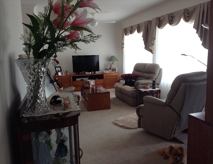 Ground floor villa in a over 55 retirement village, 2b/rooms, bathroom, lounge, dinning kitchen etc, unfortunately you will have to park your car on my driveway as I only have a single garage, fully fenced back courtyard, & fenced front patio, gardens & lawns are maintained by garden crew.