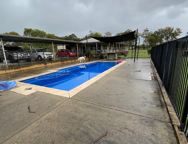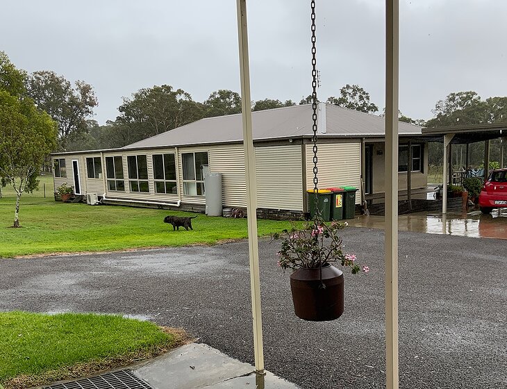Lovely 5acre property with 2 dogs that we need separated as younger dog goes for our elderly boy have established a routine with the dogs and they both know their roles and 2 older chooks that occasionally gives us an egg