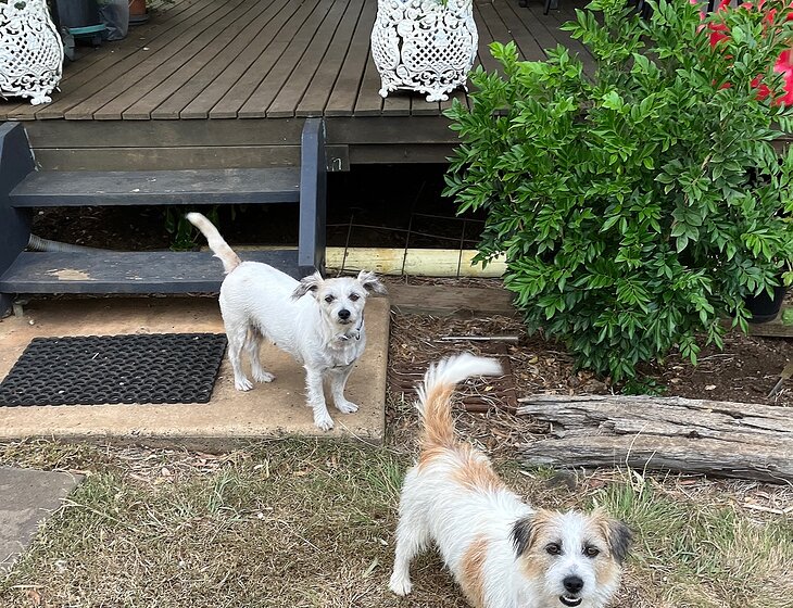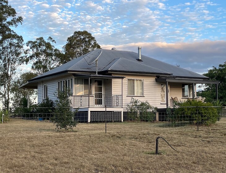 Hello, I have 5 acres which is not isolated 24 km from Kingaroy and 12 km from Kumbia. Not far from the beautiful Bunya mountains for walks, coffee and restaurant. Having lived on many farms I don’t like dogs in the house so Muffin and Millie have their own flash accommodation they live in at night Or if I go out. I also have a Stockhorse stallion Woodhill barrister who is 26 years old who I feed morning and night And he is really quiet. Feel free to give me a call. I have also tried to create as much garden as I can, which is not easy on top of the hill and very windy with beautiful views. Kind regards Lyn ?