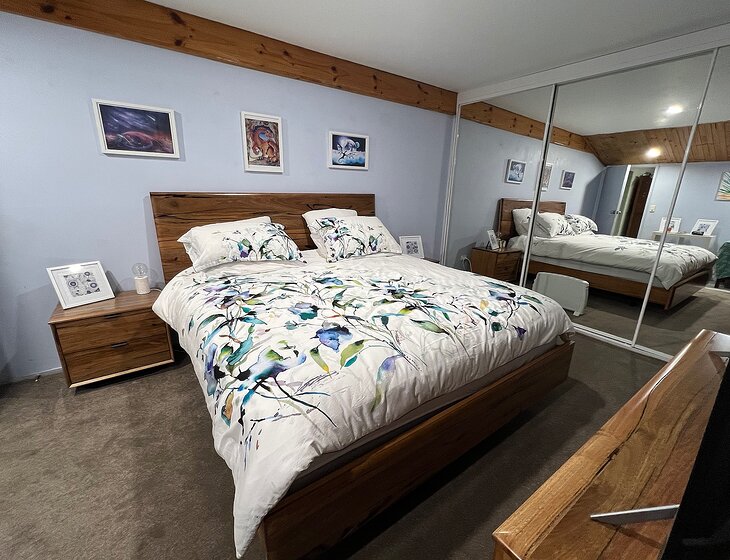 I have a lovely downstairs large bedroom with a king sized bed off the downstairs lounge/ art studio.