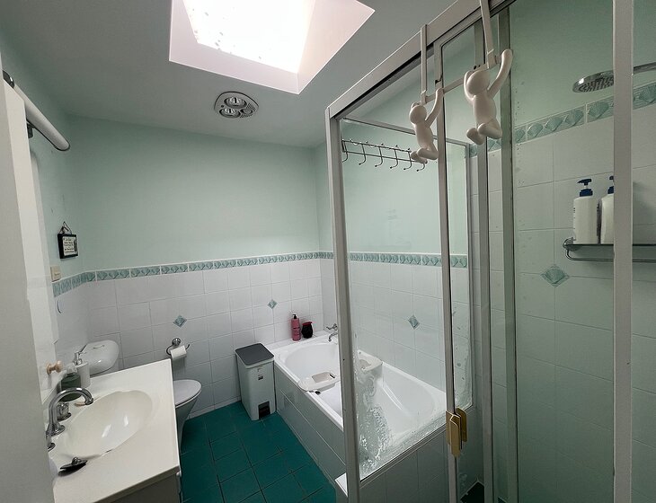 There's a toilet and sink in the downstairs internal laundry/ utility room, which can be used overnight but most guests prefer to use the main bathroom which is directly upstairs from that large bedroom.