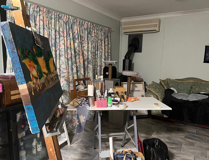It has a heater and a fan plus the aircon in the adjacent art studio/ downstairs lounge. I have an internal laundry with washer, dryer and an extra fridge/ freezer.