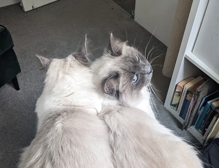 Clio liked to sit next to me, or on my lap when I was working. Freya is shy and warmed to us after a bit.