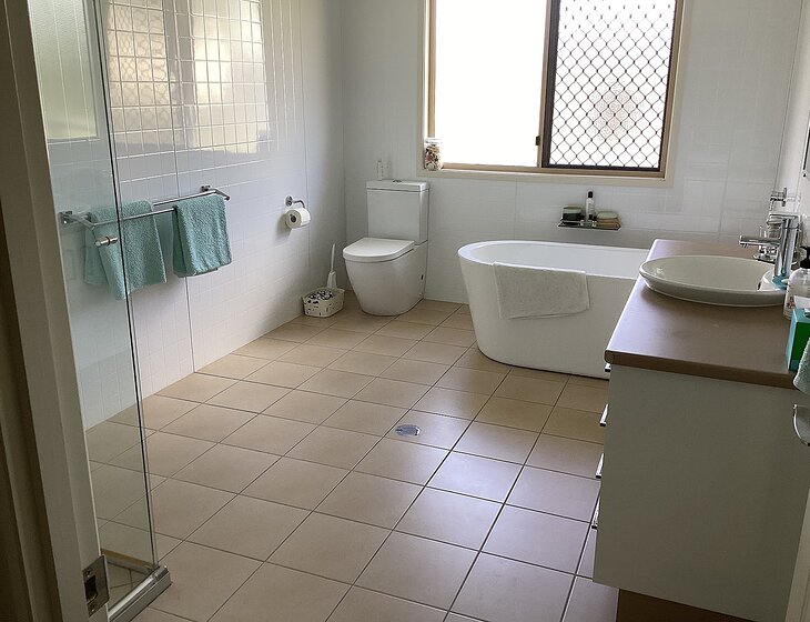 We live in a newish home (11 years old) in Esk, Queensland. Esk is a small country town located in the Brisbane Valley.within an hour of Ipswich and Toowoomba. Esk has an IGA, chemist, service station, doctors, hospital, cafes and a pub. Also, has a golf club, bowling club and tennis courts.