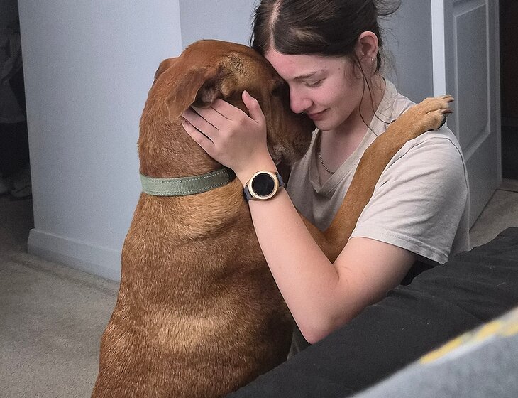 Have 1 dog -complete sook and learnt to purr from the cat.
