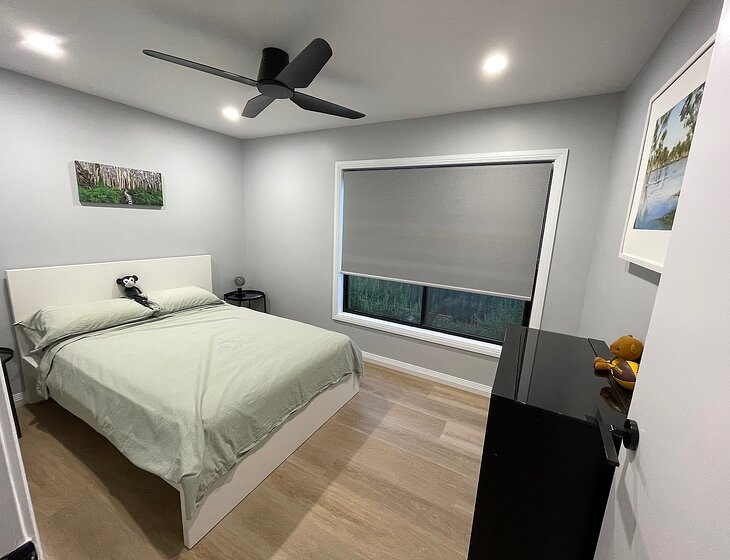 Views of the hills which also means a steep driveway and some stairs down to the house (not suitable for those with accessibility requirements). All utilities paid. Foxtel and streaming services. Suitable for someone wanting to work from home or to spend time in Brisbane and surrounds.