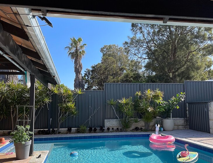 Our spacious, single-level home is nestled in a peaceful neighborhood, just two streets from the beach. Our home offers the ideal blend of relaxation and convenience, featuring a refreshing pool and easy access to scenic coastal trails. Enjoy a stroll or bike ride to nearby cafes and a supermarket, while a short 10-minute drive brings you to a variety of restaurants and activities.