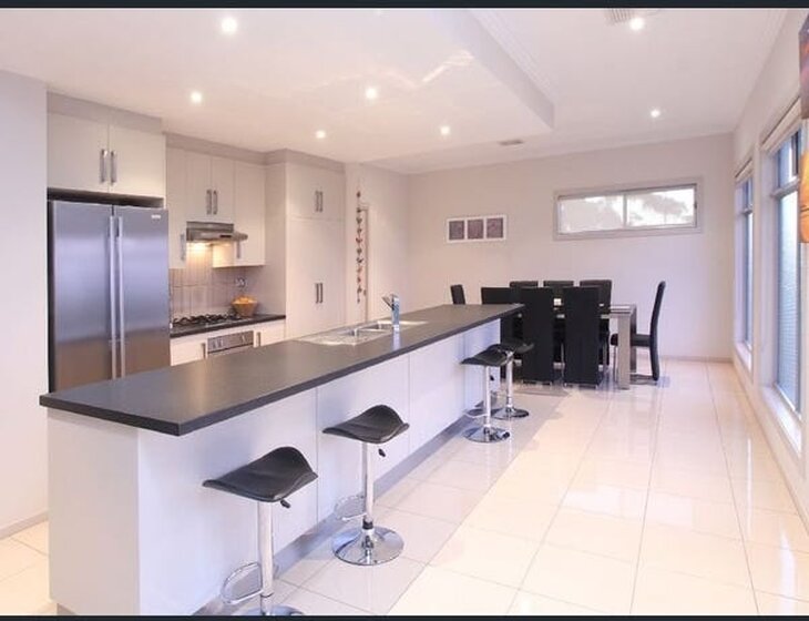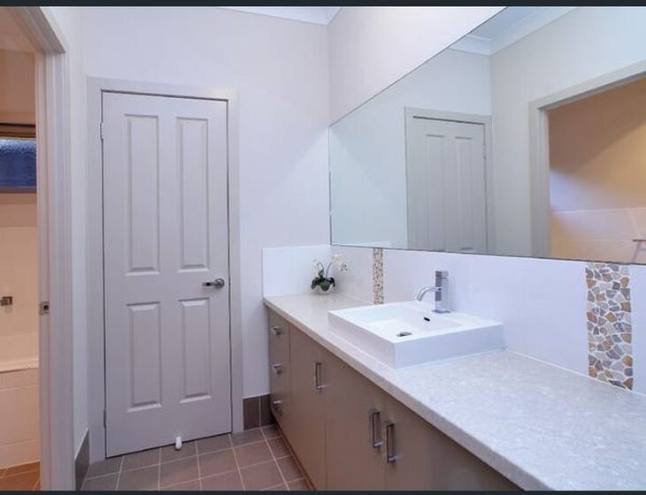 Double storey house with stairs. Living area and kitchen upstairs, bedrooms and bathrooms downstairs. Toilet upstairs too.