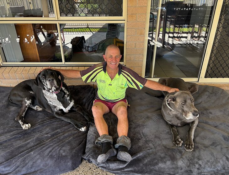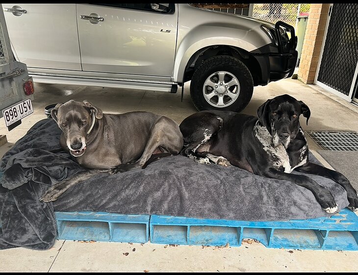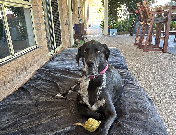 Our home consists of our beloved Great Danes x 2. Our Gentle boys are relaxed and friendly and require feeding twice daily. They absolutely love cuddles and company and are happy resting and sleeping most of the day. No need for daily walks as they'll potter around the yard and just be happy having you around.