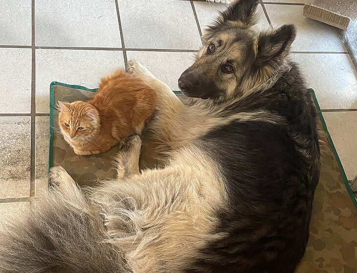 Winston is a 5-yo German shepherd. He loves people hugs and playing ball. He’s not a fan of other dogs or birds.