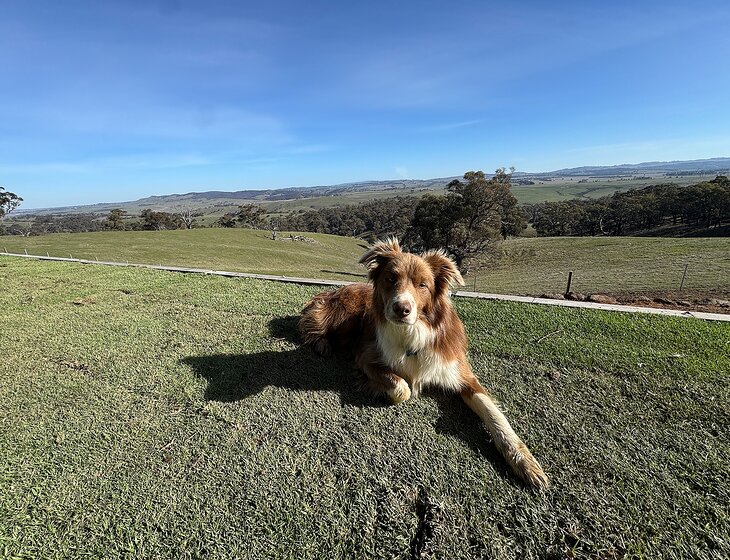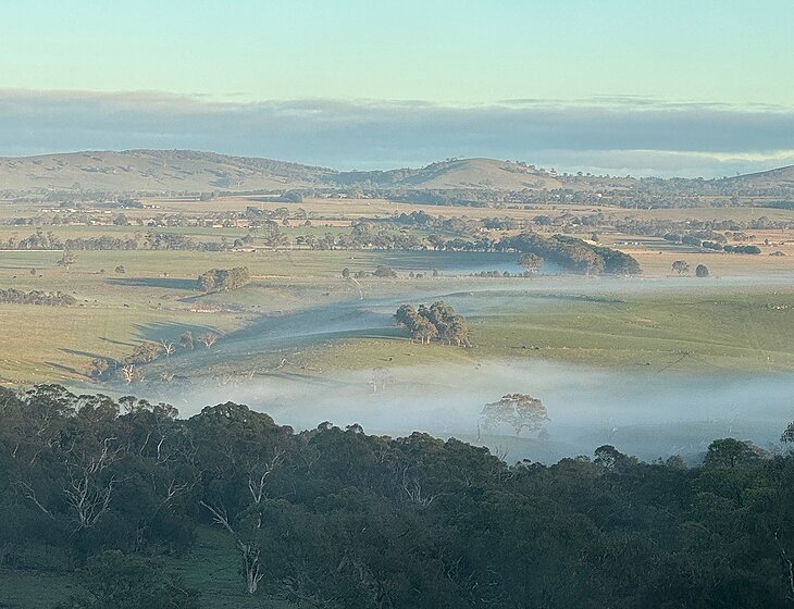 This is a brand new four bedroom / two living area home on 130 acres. We have kangaroos, echidnas, deer, a nest of eagles and variety of bird species on our property. The property has views from our alfresco over the Macedon Ranges.