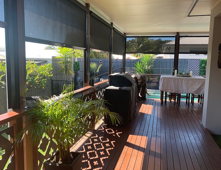 Our beautiful home is located 10 minutes drive from beaches and about 30 minutes to stunning hinterland. We have a low set modern home with all amenities on a small boutique estate that has shops/supermarkets, chemists & medical centre etc within a couple of minutes drive.