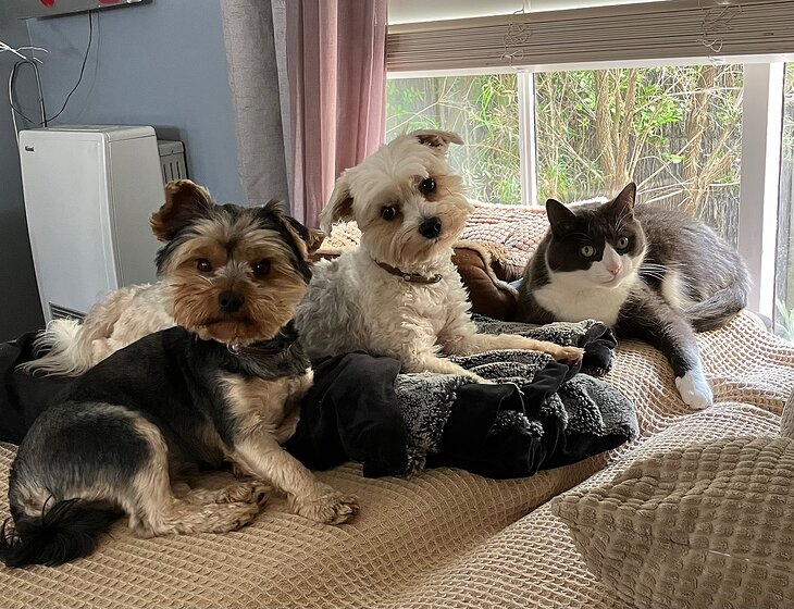 Liz, the host was very friendly and welcoming. She explained everything required in detail, which is excellent, making it an easy sit for me. The house was very cosy and comfortable in a quiet, scenic area of Frankston. I enjoyed the walks with Thomas and Pippa around the block each day and the cats were very easy to look after and very chilled. All four were so endearing and seemed to get on well together.