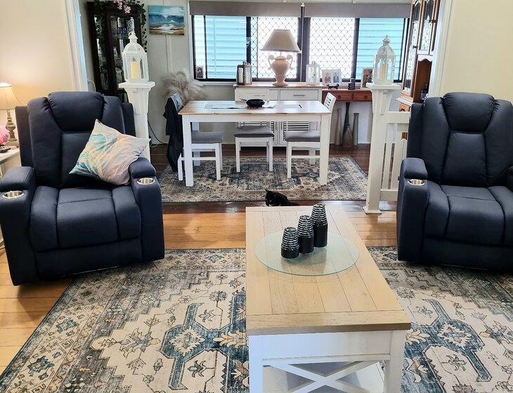 Our highset older Queenslander style home has a north-east facing front deck, is fully security screened with 5 split system aircons/fans and is completely lockable under for car accommodation (and a very cosy & comfortable lounge area), also a 12mt long tandem carport, so is a very comfortable home to live in. We would appreciate the garden receiving a hose every couple of days (as we do not get a high rainfall here), and perhaps the lawn mowed just the once over the time.