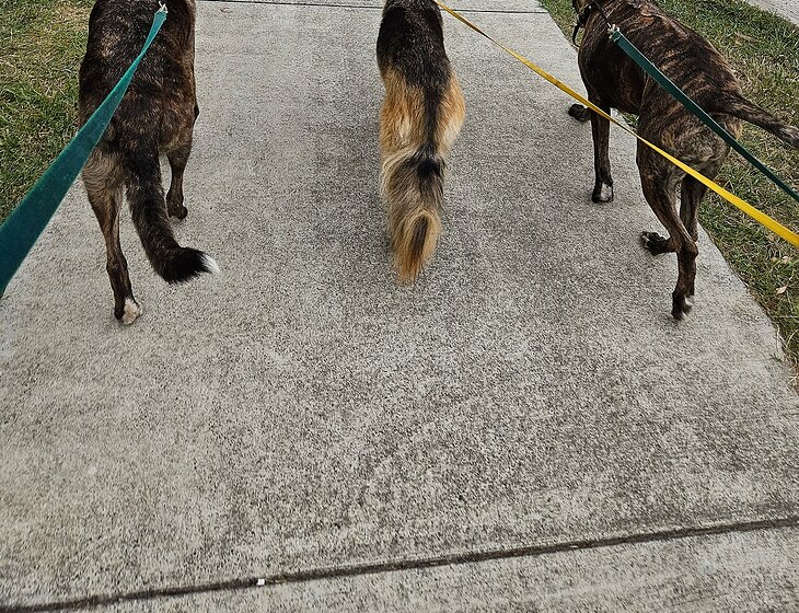 We have three large dogs, rescues, one male and 2 females that require attention and food while we are away.