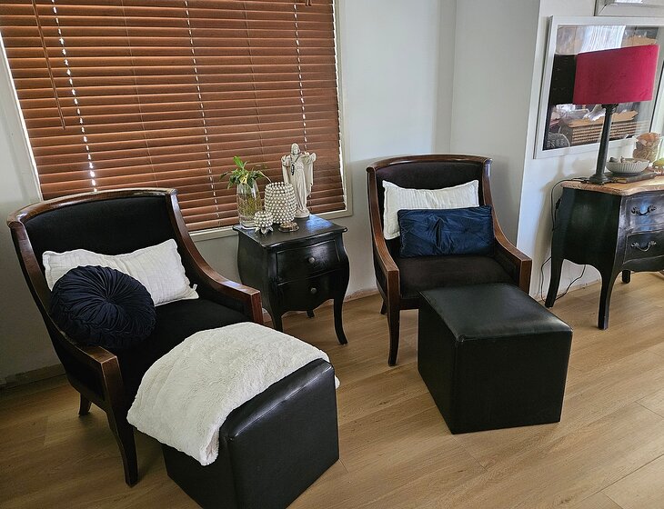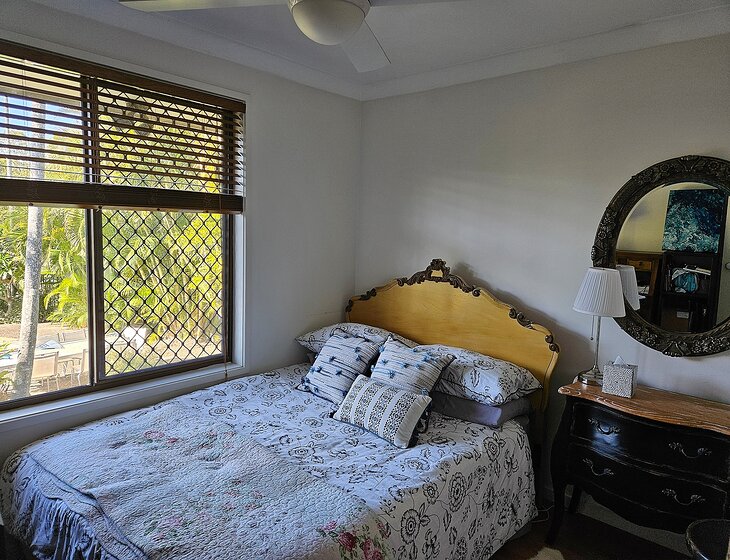 2 bedrooms available, double bed and a room with two singles, lounge TV room, pool, room for a large caravan to be parked off the street. Nice relaxing garden area to the front and back of the house. Lovely neighbours.