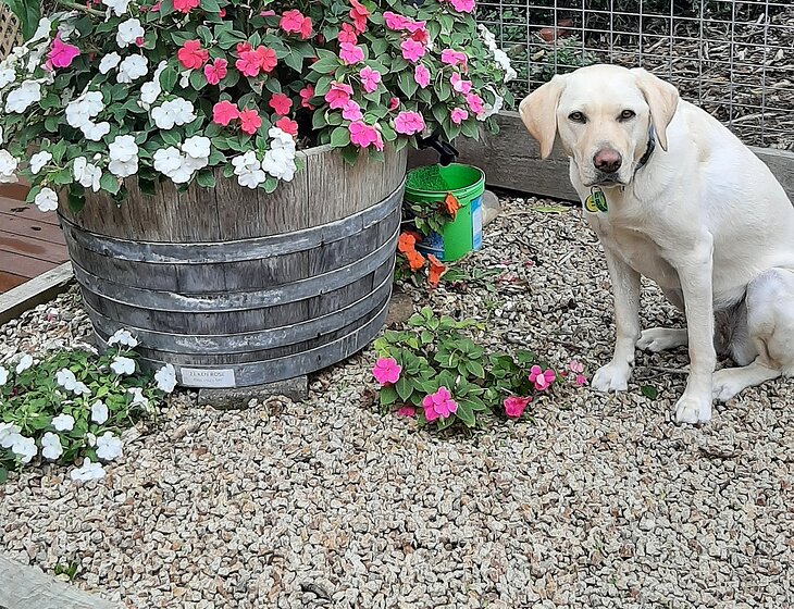 1 young Golden Lab, in a modern comfy 2storey townhouse in central Geelong. She is an indoor dog mostly, used to having humans home for work and company. She is a reclassified guide dog, well trained and quiet, but needs to be taken outside for toileting. And a couple of walks each day.