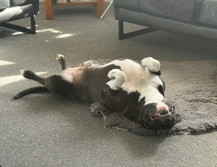 Bonham is house trained, very friendly, low maintenance, polite, goofy and great company with access to a doggy door to enjoy both indoors and outdoors.