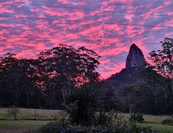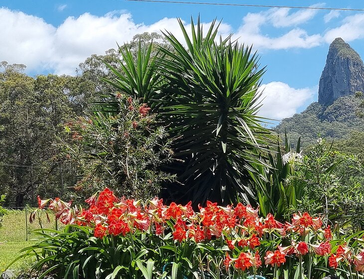 I have a large patio on which to enjoy wide open spaces of fields and a magnificent view of Mt Coonowrin.