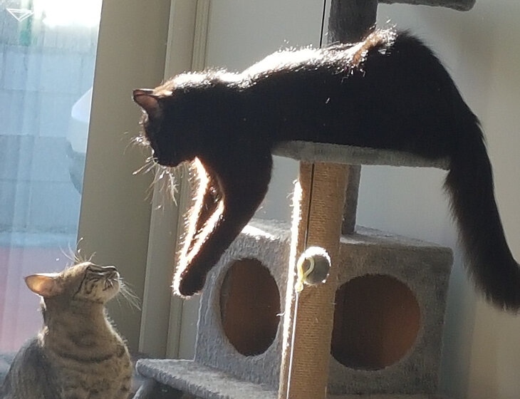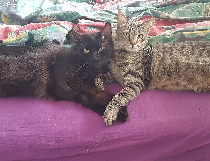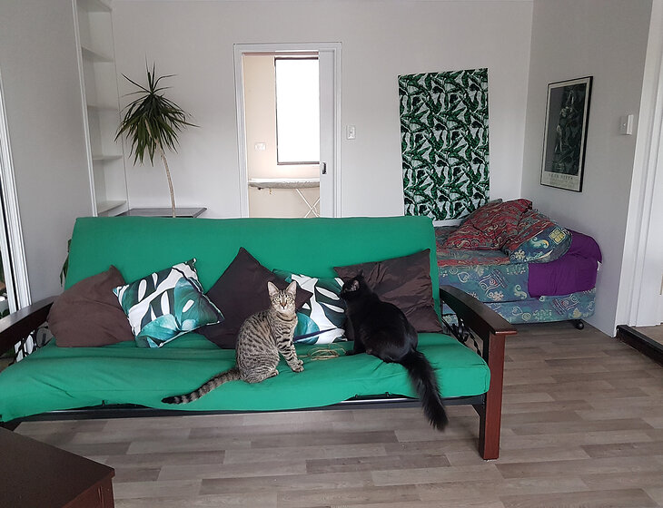 I have 2 cats born in March 2021, so will be 4 years old during your stay. My home is calm and fairly quiet. The black cat can be timid with new people, especially noisy people. He is also the most affectionate one, so after a day when he warms to you - he will be very smoochy and climb onto your lap for cuddles. The tabby is a bit more adventurous and will come over to sniff you and let you pat her. She often nestles into me when I am working on the computer or in bed at night. They usually follow me into whichever room I am in and often sleep on my bed, so they like human company. I often leave them alone in the daytime, but I am usually home at night. I need someone gentle to stay here so they have some human contact and don't get distressed. (Or so I don't get distressed worrying about them).