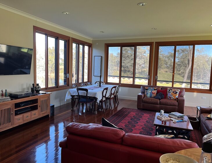 We are on acerage on the northern edge of Goondiwindi. It is a seven minute drive to the centre of town.
