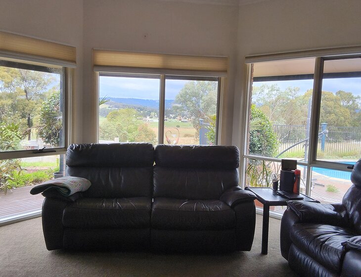 We have a small dog that needs feeding twice a day, 8 chickens to be watered and fed every couple of day and a few cattle to kepp your eye on. The scenery is beautiful , theres a wood fire and air conditioning to keep you cosy. Momo loves to cuddle on your lap during the evening.