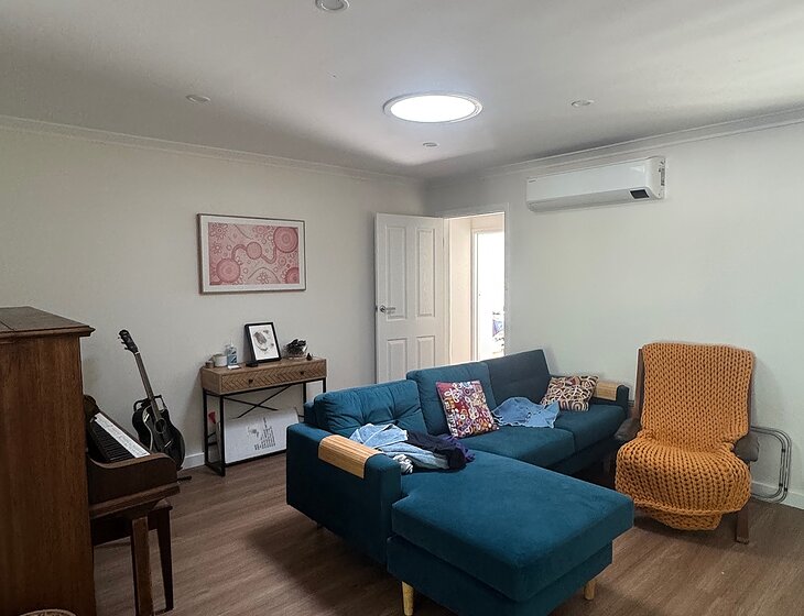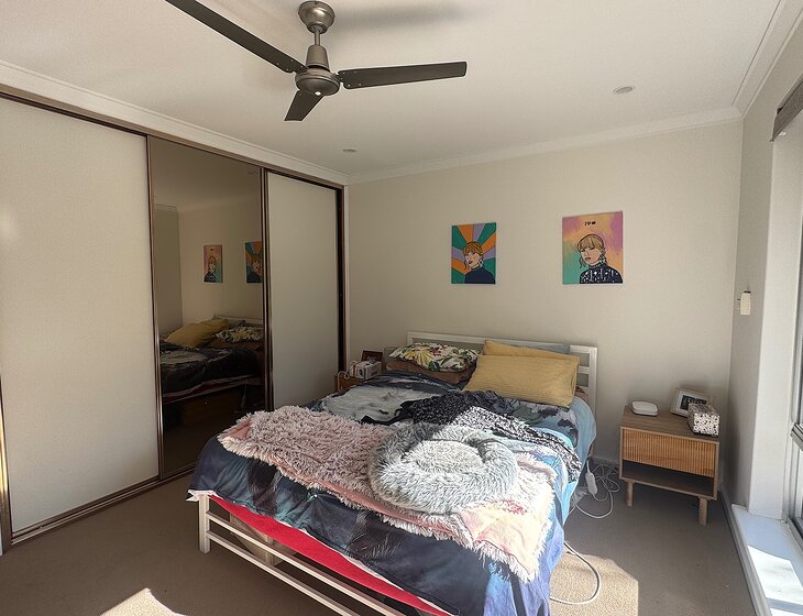 2 bedroom (avail) four in total 2 bathroom home with pool, one border collie blue heeler cross (Finny) and one small black cat (Sami), dog lives in outdoor area at the back, cat inside and front yard pet.