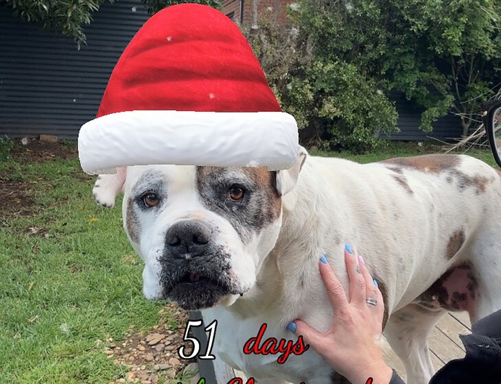 Madusa the bulldog she loves outside but sleeps in the lounge room at night time on her bed.