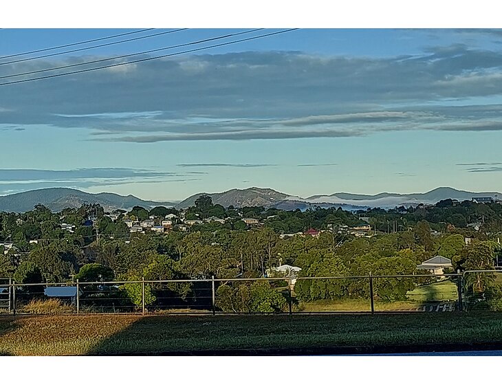 Sunrise and sunset vistas are a treat on this peaceful, edge of town residential street. Quiet neighbours, distant cattle in the paddocks far below, yet 5 mins drive to town centre, or a pleasant walk along the hilly streets.