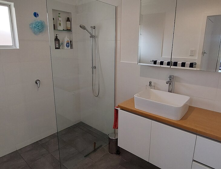 Town sized block on slight slope between mulched native plant beds attracting much birdsong. Suits sitters happy to mow grass, trim edges as needed. Self-propelled walk-behind mower and motorised string trimmer. Herb, citrus trees, blueberry bush to avail of.