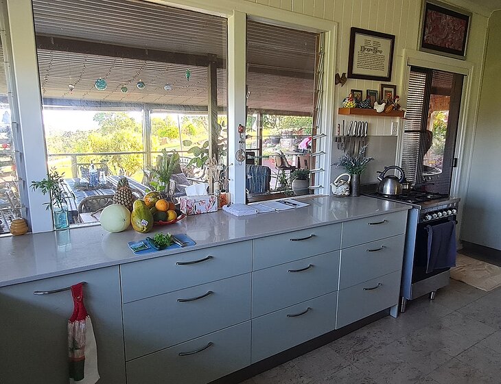 our small cottage with all mod cons. has a huge verandah for the fantastic views both north and west of the mountains. We have nbn, fireplace, gas cookers, and a separate room for reading etc. The birds are everywhere and we nurture nature with a wide varierty of native plants and trees. It is a peaceful private place about 13minutes west of Gympie. garden maintenance, watering, some spraying of fruit trees. This position is for a couple .