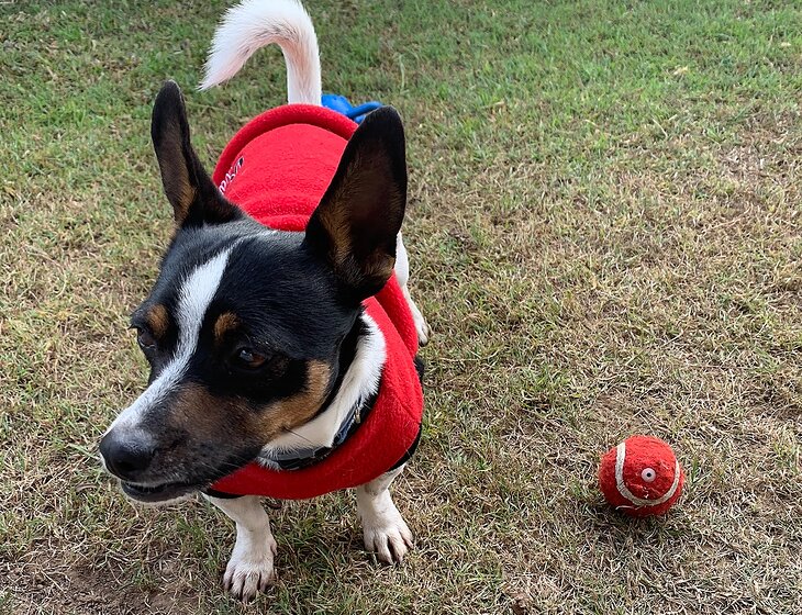 Lachy (dog) loves playing with his ball and soft animals and toys, walks, trips in the car, naps in your lap and plenty of attention. He thinks anyone who visits our house is really coming to see him!
