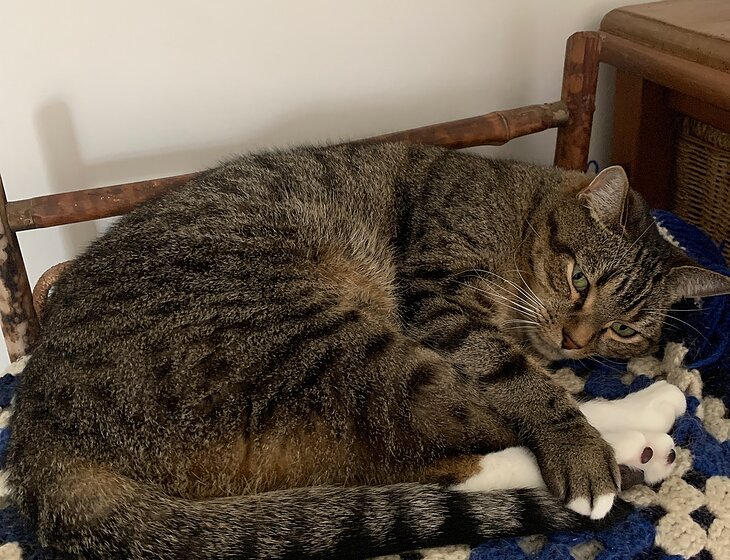Mim is a quiet senior cat who spends most of her time sleeping. Strictly an indoor cat Mim enjoys a chat and naps on the back of the lounge. She is gorgeous and has her selective spots throughout the house.