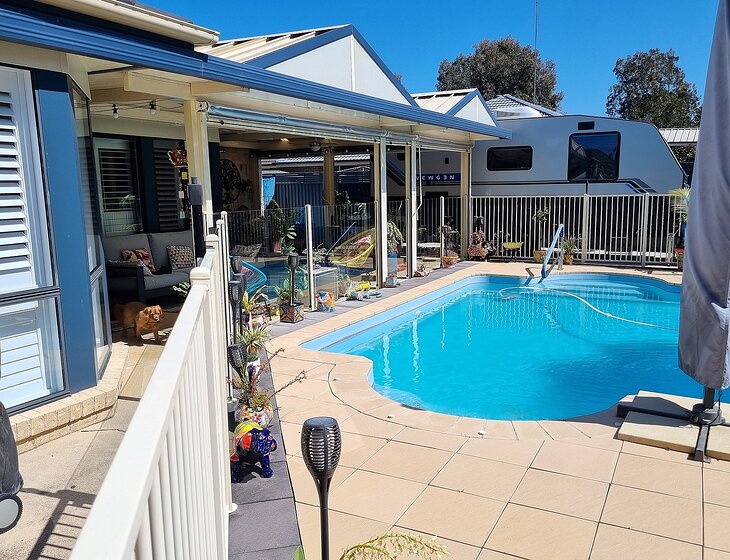 has room on driveway for caravan and car, peaceful area near bush and park. pub within walking distance supermarket over road. experience in pool maintenance would be a advantage also gardening .
