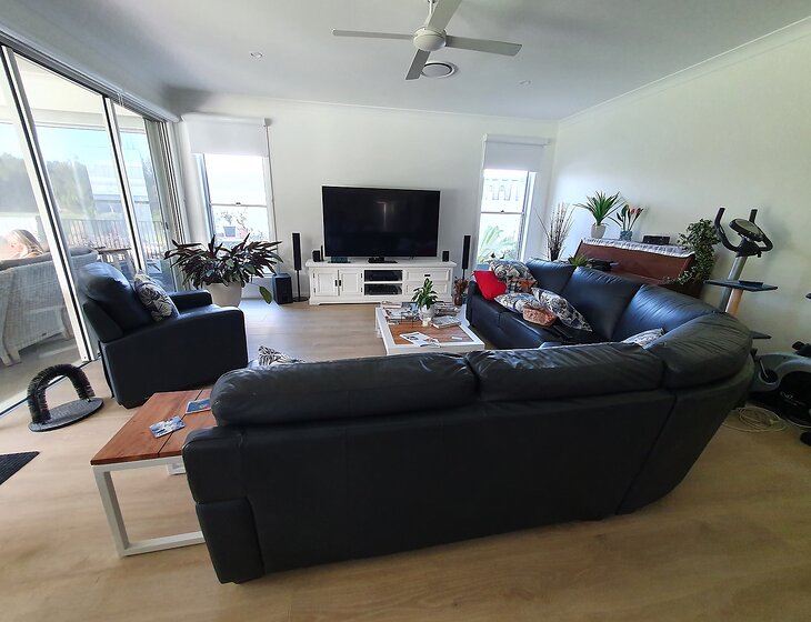 We have a large, modern 4-bedroom home with a large garden area and swimming pool. It has a gorgeous, relaxing view overlooking a lake and part of the Harrington golf course from a large alfresco area at the back of the house. An uncovered deck at the bottom of the garden is a great area from which to enjoy the ambiance. The amenities are available to use. The property is non-smoking.