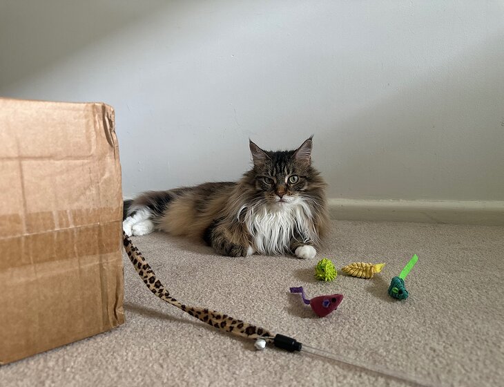 Maeve is a gentle, affectionate Maine Coon who loves company. She’s low‑maintenance but appreciates a bit of routine and attention.