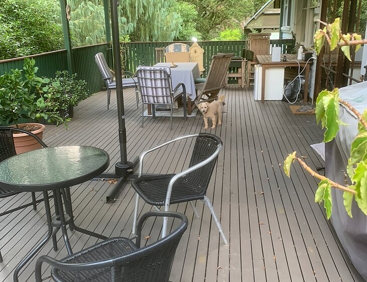 The huge sunny deck is my favourite spot to sit / work / hang,