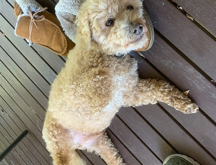 One older super-cute poodle-cross to feed and walk, & keep an eye on, with a chicken to feed daily…