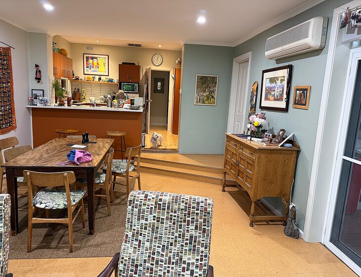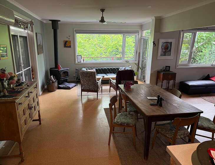 3 bedroom , 2 bathroom with large yard. 3 chickens need feed/watering/bedding change 1-2x/week. Hopefully laying some eggs! Our beloved small dog Puff is the priority. He thrives on attention and walks, happy to sleep on our bed at night but ok not to. 5 years old. Bouncy and snuggly. Used to being home alone while we work.