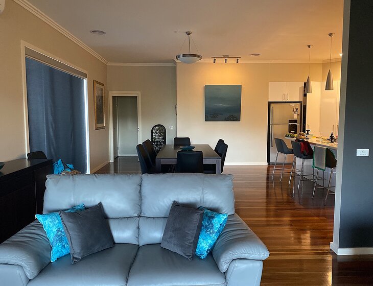 “We spent 3 weeks with Angus the pup at Geoff and Jo’s beautiful Healesville home. Geoff and Jo were fantastic, communication was clear and thorough and their home is modern and spacious yet very cosy. Angus is an awesome dog, well trained, smart and energetic with a beautiful, loving personality. We would go back anytime!”