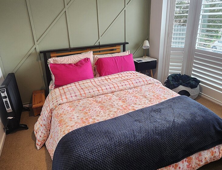 Bedroom with double bed and large bathroom with bath will be available for our houseguests. On street parking available.