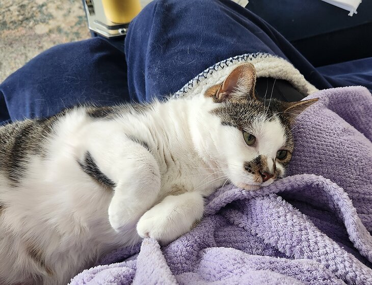 Bella is a healthy, low maintenance and affectionate girly - just needs daily feeding and attending to litter box. She will offer lots of pats, cuddles and chatter in return!