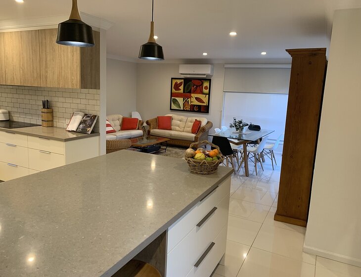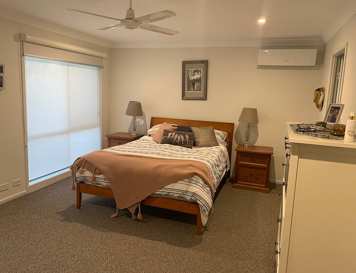 Modern and comfortable four bedroom, 2.5 bathroom house. Aircon throughout and a beautiful modern open fireplace for winter. Master bedroom has a Queen-size bed, two other bedrooms are furnished with another queen and a king single respectively. There is queen sofa-bed in the fourth bedroom.