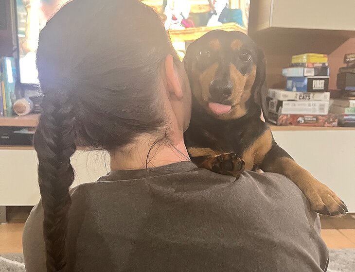 Needy Dachshund boy needs love and care while we are away in a large house on a quiet cul-de-sac.