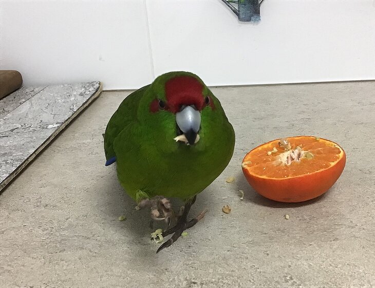 parrot feed and keep cage clean