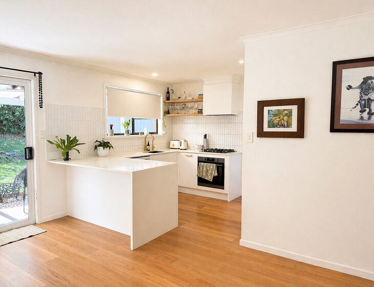 We’re based in Highland Park, offering a relaxed, beach-style 3 bedroom home. The space is tidy, light-filled and gets beautiful morning and afternoon sun, perfect for a slow coffee or unwinding after a long day.
