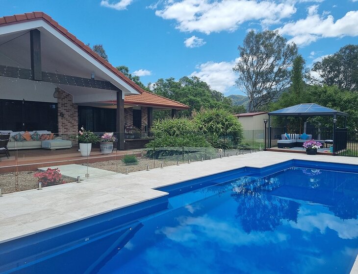 We live on just over 3 acres about 6 minutes from Samford village in a modern low set house with a pool.