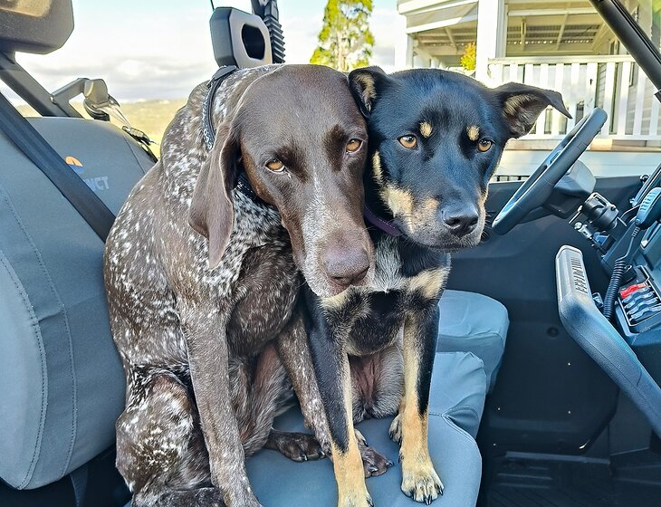 We live on a 5 acre block just south of Toowoomba. It is a stunning country style home with a gorgeous view of the Vale. Only a 10min drive into town with supermarkets, pubs, shops etc. We have a 6yo German Short Haired Pointer and an 8month old Kelpie we need looked after -both girls. Marley is gentle, kind natured and active. Abby is an energetic, fun loving pup with a great off switch. They are both inside/outside dogs who are fully house trained and they have a doggy door so they can come and go as they please. Both girls loves being active and running around the yard, but are also very affectionate and love a cuddle. The home is equipped with everything you could need, including an outdoor fire pit and indoor fireplace for those cold winter nights. The property is very quiet, with the closest neighbour being 200m away.